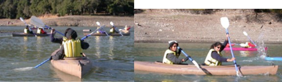 two photos of people paddling a kayak simultaneously or not people paddling a kayak simultaneously of not
