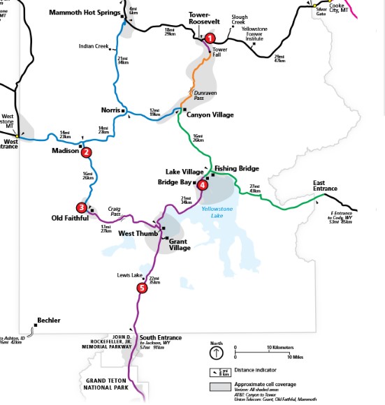 in Yellowstone, the cumulative mileage