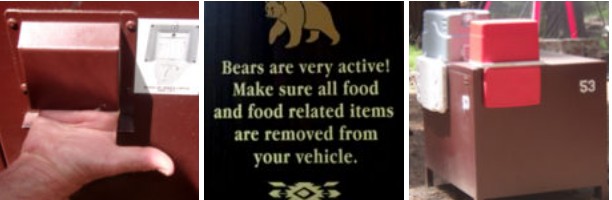 three photos of food storage bear locker